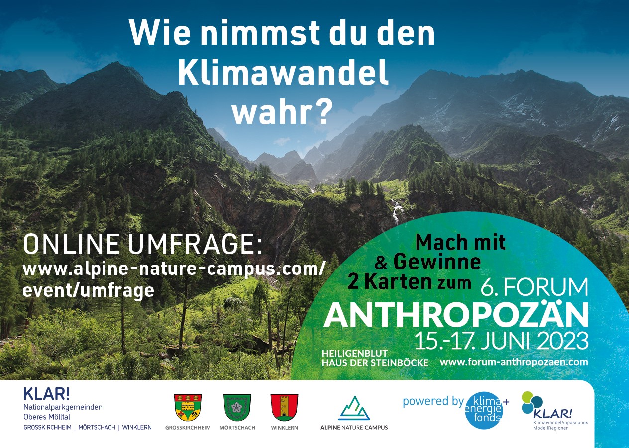 - Wir verlosen 3 Gratis-Eintrittskarten zum 6. FORUM ANTHROPOZÄN, vom 17. – 19.06.2023 in Heiligenblut am Großglockner! www.forum-anthropozaen.com