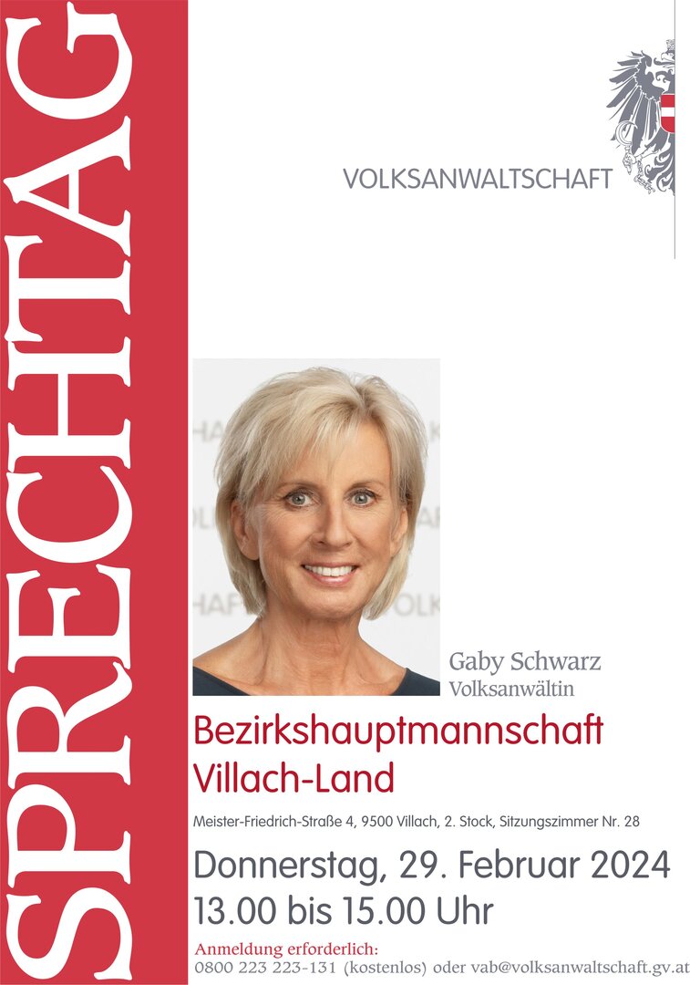 Sprechtag in Villach: 29. Februar 2024 von 13.00-15.00 Uhr in Villach