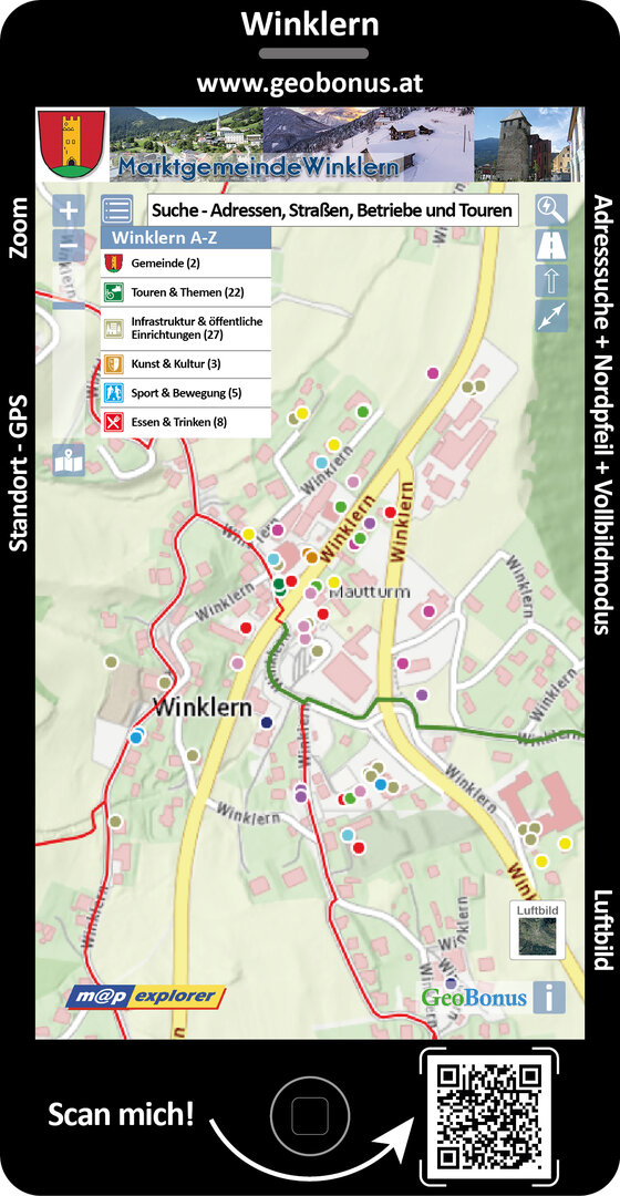 Den digitalen Ortsplan finden Sie auf Gemeinde Winklern - 20640 oder einfach QR-Code scannen!