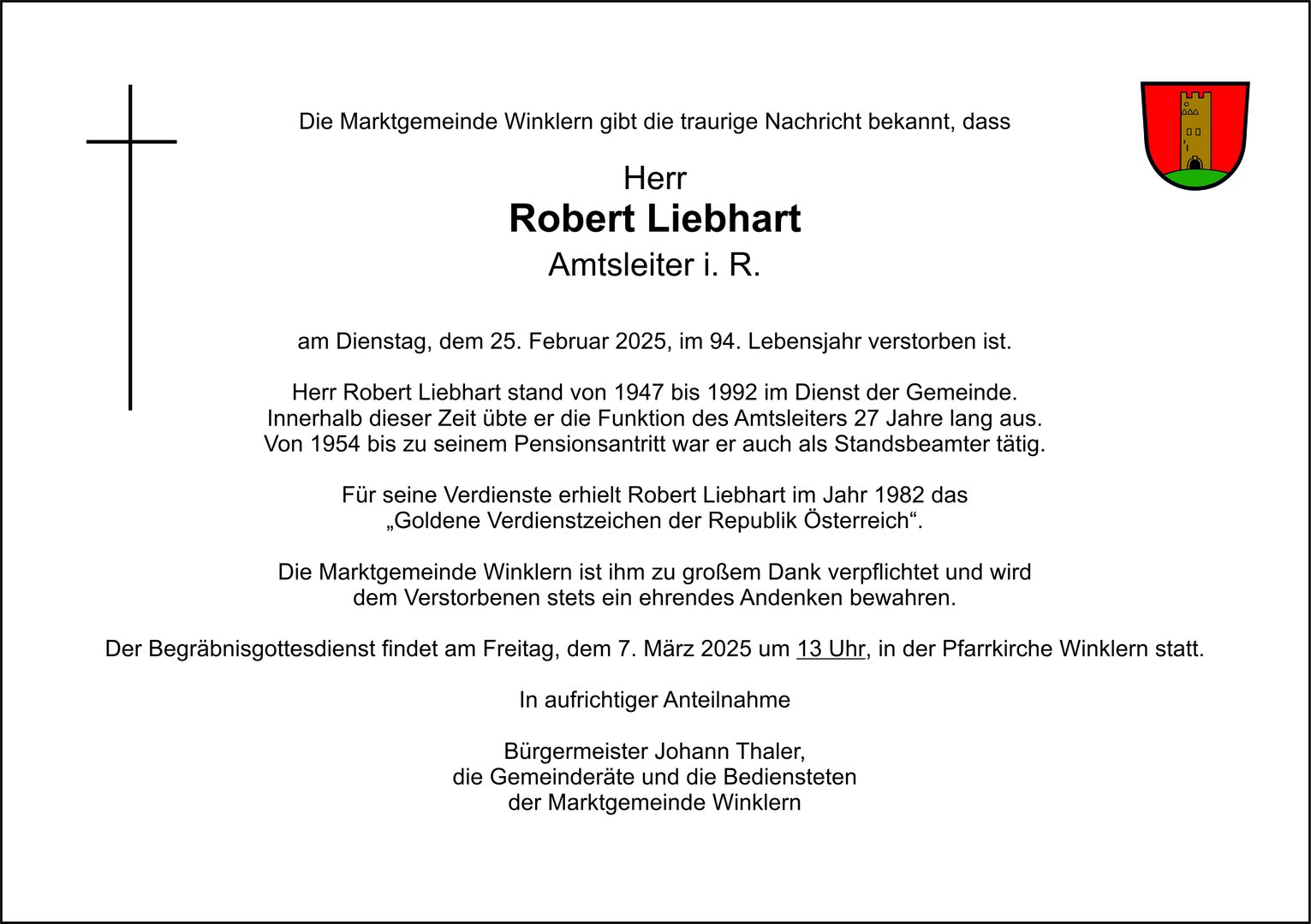 Traueranzeige - Robert Liebhart